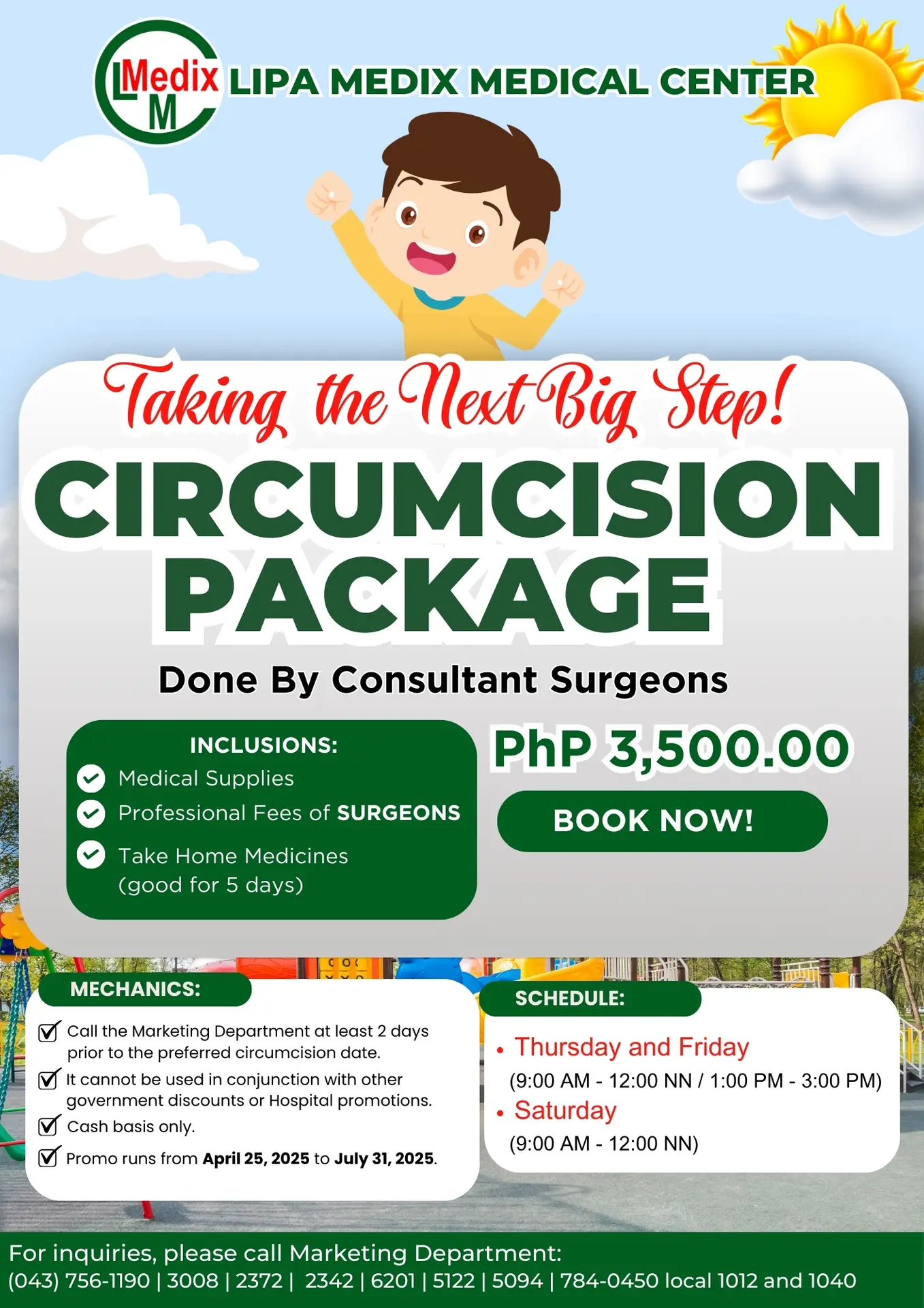 Give your little one the care he deserves with Lipa Medix Medical Center’s Circumcision Package — performed by our Consultant Surgeons.